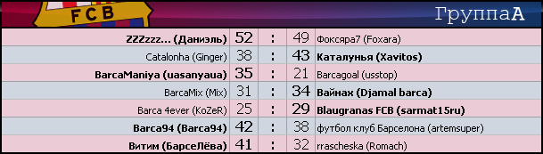 - 83 - группа D - FCB (RIGo-17) - catalunyalove2 (sasha2h) 43 : 40