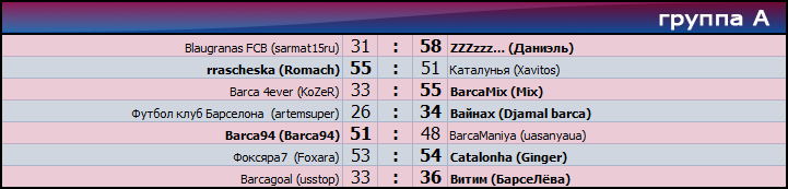 - +27 - группа A - Blaugranas FCB (sarmat15ru) - ZZZzzz… (Даниэль) 31 : 58