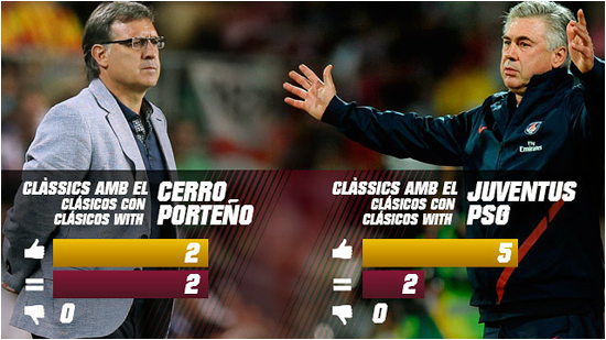 В субботу Херардо Мартино и Карло Анчелотти предстоит встретиться друг с другом в первом испанском Эль Класико. Однако это Класико не будет для них первым в карьере. Тренер сине-гранатовых провел четыре таких матча в Парагвае, в то время как наставник "бланкос" семь во время работы в Италии и Франции. Никто из них ни разу не терпел поражений.