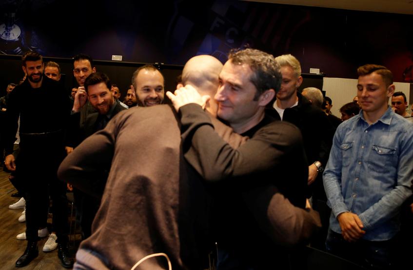 Полузащитник "Барселоны" Андрес Иньеста опубликовал фотографии с церемонии прощания с Хавьером Масчерано, который перейдет в "Хэбэй Чайна Форчун".