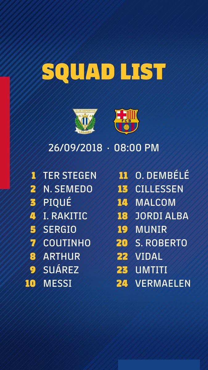 "Барселона" опубликовала заявку на сегодняшний матч Примеры против "Леганеса".